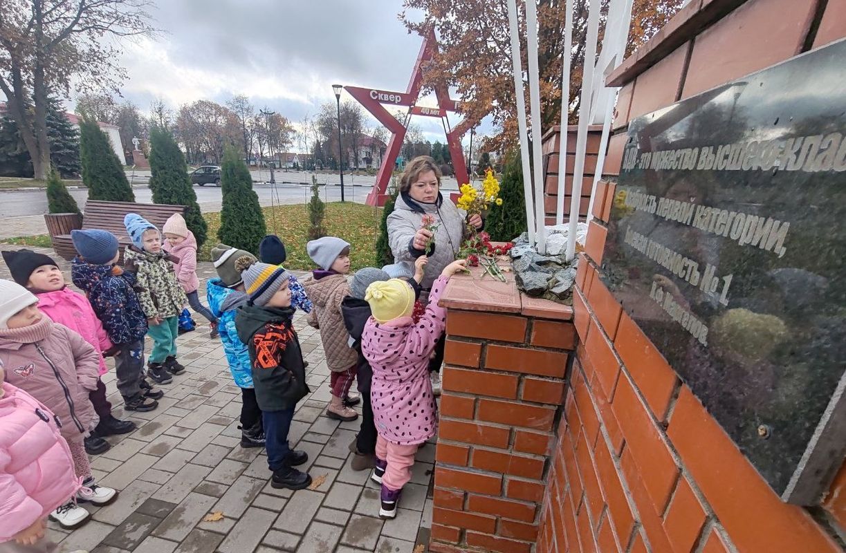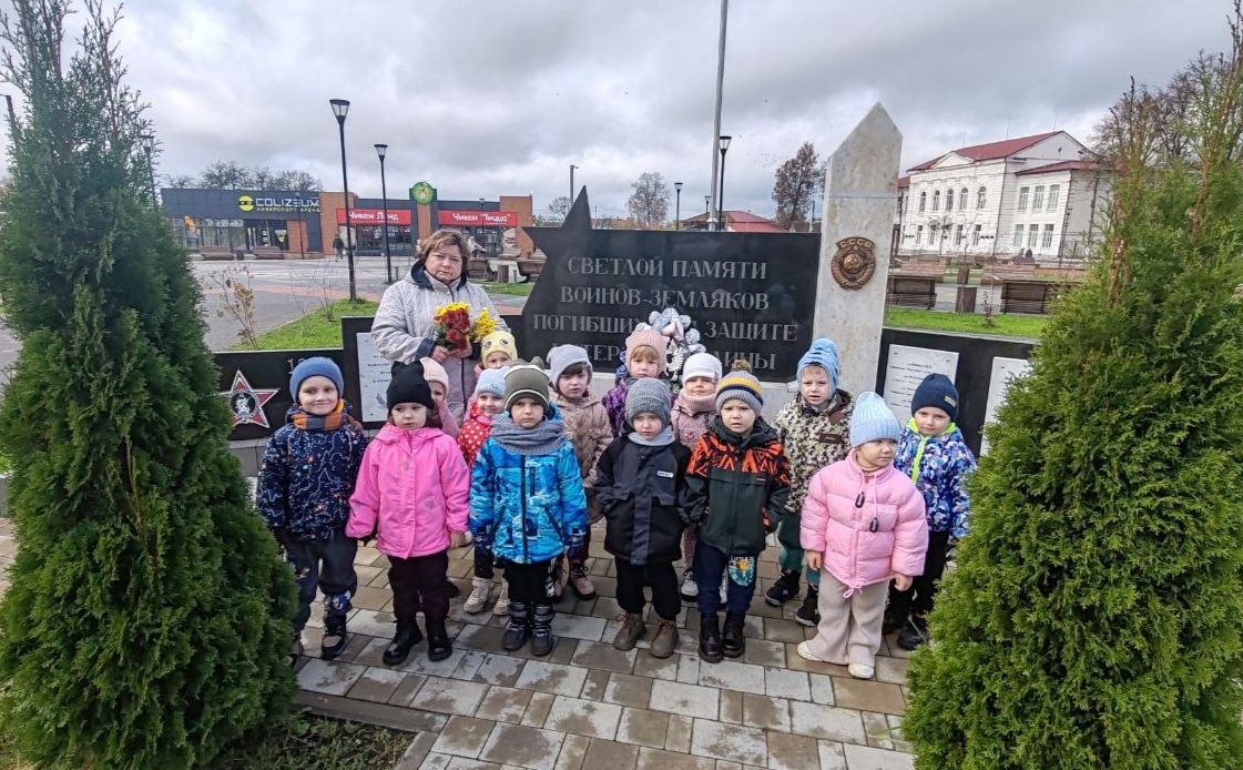 В сквере «40 лет Победы» ребята посетили мемориал воинам-десантникам, воинам-пограничникам, памятник воинам - землякам и Памятный знак «Морякам России». Затем дети увидели мемориальный комплекс Стена Памяти, Вечный огонь, постамент Танк ИС-2 и памятник Советскому солдату, установленный в честь освобождения Стародубщины от немецко-фашистких захватчиков. Малыши с интересом слушали рассказ воспитателя о мужестве и героизме наших защитников.